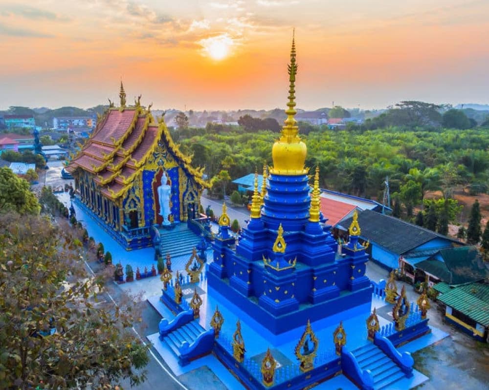 A la hora indicada, salida en vuelo regular hacia Chiang Rai. A la llegada, visitaremos el famoso Triángulo de Oro, el punto de encuentro entre Tailandia, Laos y Myanmar. Realizaremos un paseo en lancha por el río Mekong, cruzando las aguas de los tres países, para luego visitar el Museo del Opio. Después, disfrutaremos de un almuerzo antes de continuar hacia la "Casa Negra", un singular complejo diseñado por un reconocido arquitecto tailandés. Finalizaremos la jornada con una visita al impresionante templo Wat Rong Sueaten, también conocido como el Templo Azul. Alojamiento.