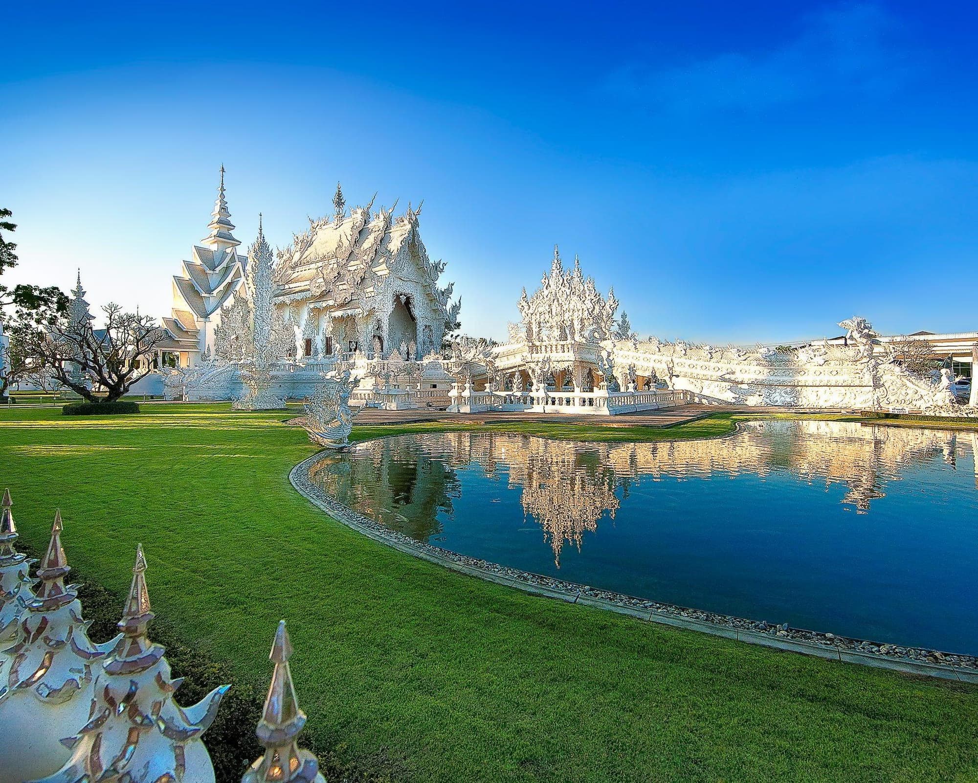 This morning, we visit the highly popular Wat Rong Khun, or the White Temple, a contemporary Buddhist temple with a unique design created by a Thai architect. Its almost immaculate white color symbolizes purity. Later, we suggest an optional excursion (for an additional fee) to the "GOLDEN TRIANGLE": Our first stop is the Hashish Museum, where we will learn about the region, which has been the center of illegal hashish production for centuries. Next, we head to the Golden Triangle border area. From the hilltop viewpoint, we take in the magnificent view formed by the confluence of the Mekong and Ruak rivers. Then, on a boat ride along the Mekong River, we pass through the borders of Myanmar and Laos. Afterward, we continue to Mae Sai, a town on the Myanmar border, located at the northernmost point of Thailand, where we visit the border market. Free time for shopping at the border point. To end our tour, we will visit the world-famous tea fields of Chiang Rai along the way. We then drive to Chiang Mai, a 3-hour journey. Overnight stay.