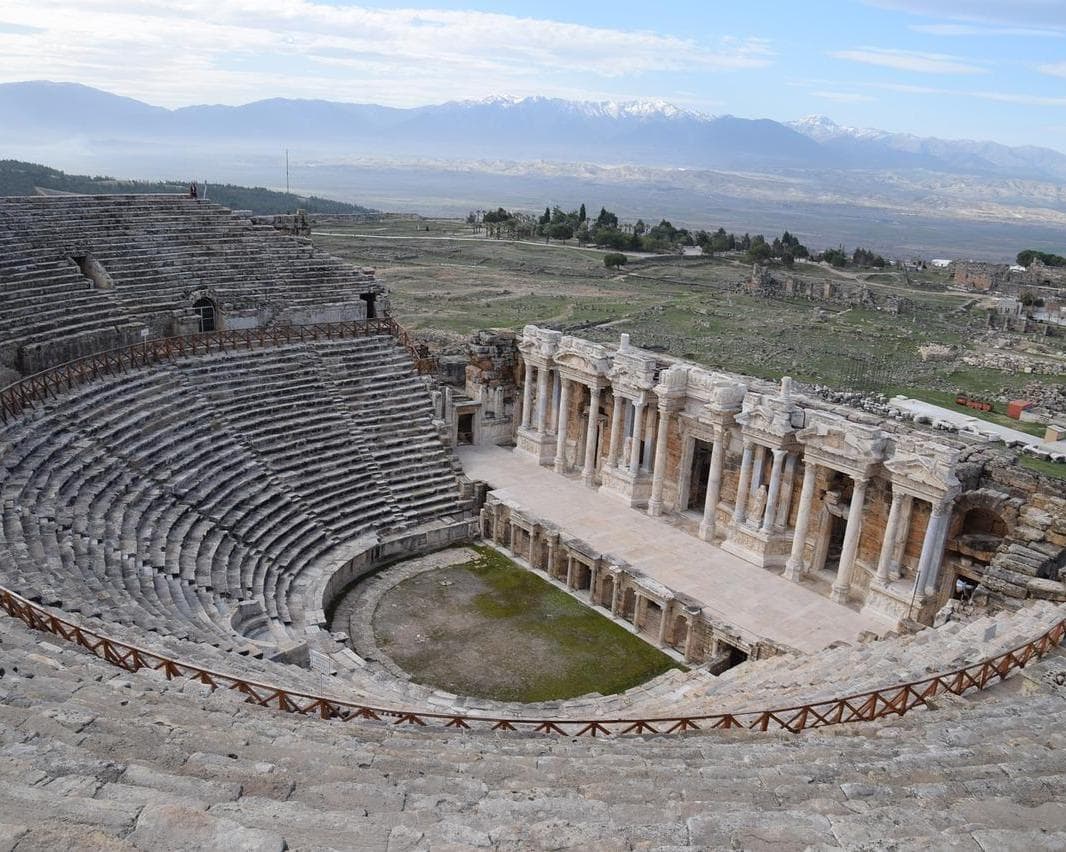 Salida hacia Pamukkale para visitar la antigua Hierápolis y el Castillo de Algodón, verdadera maravilla natural, una cascada gigante, estalactitas y piscinas naturales. El nombre "Hierápolis" se deriva del griego y significa "ciudad sagrada", refiriéndose a los numerosos templos y lugares religiosos que existían en la ciudad. Uno de los aspectos más notables de Hierápolis era su famoso teatro, que tenía una capacidad para albergar a miles de espectadores y aún se conserva en gran parte en la actualidad. La ciudad ganó reconocimiento como un destino popular de spa y curación debido a sus aguas termales naturales y piscinas calcáreas blancas. Estas aguas, cargadas de minerales, crearon terrazas y cascadas naturales impresionantes conocidas como "Pamukkale", que en turco significa "castillo de algodón". Pamukkale y Hierápolis se encuentran juntas en la lista del Patrimonio Mundial de la UNESCO debido a su importancia histórica y belleza natural. La región es conocida también por su producción de algodón, y tendremos la oportunidad de conocer productos textiles de fabricación local. Cena en el hotel. Alojamiento.