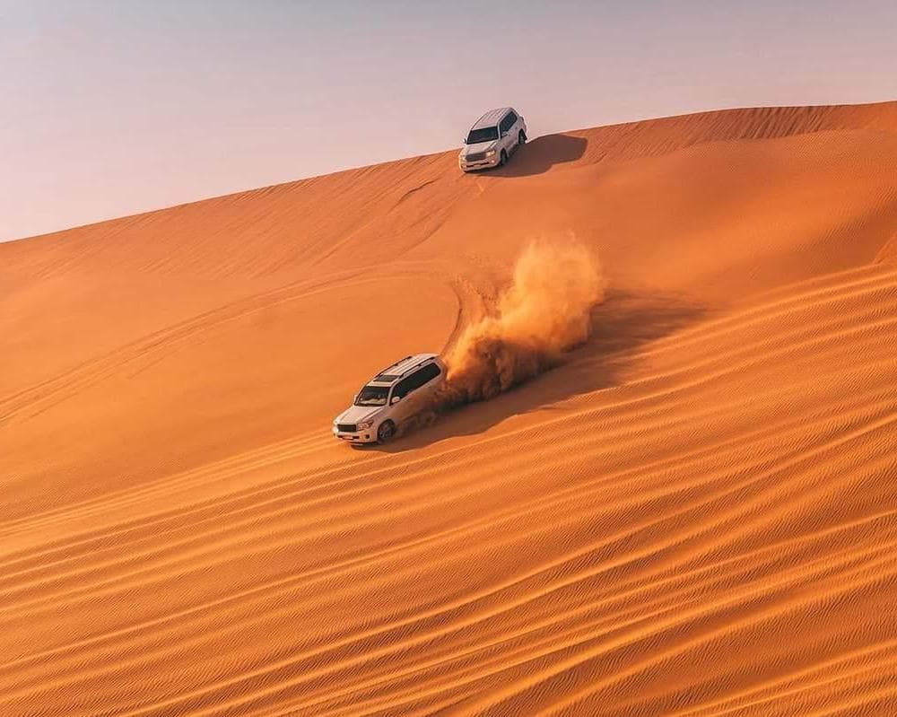 Mañana libre para disfrutar a su ritmo. Por la tarde, le ofrecemos nuestra excursión más popular. Los vehículos Land Cruiser (con capacidad para 6 personas por vehículo) lo recogerán para un emocionante recorrido por las impresionantes dunas del desierto. Tendrá la oportunidad de capturar fotos únicas de la puesta de sol sobre las dunas de arena dorada. Tras el ocaso, nos dirigiremos a nuestro campamento en el desierto, donde será recibido por el aroma de brochetas a la parrilla y cordero, el crepitar de las hogueras, el aroma de las tradicionales pipas de agua y los relajantes sonidos de la música árabe. Disfrutará de una cena suntuosa, seguida de una vibrante actuación de danza del vientre. También podrá disfrutar de actividades como esquí sobre arena y pintura con henna. Durante la velada, se ofrecerán agua, refrescos, té y café. Finalmente, regresará al hotel para su alojamiento.